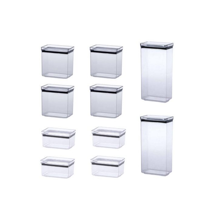 Kit com 10 Potes Herméticos Retangulares Empilháveis nos tamanhos: