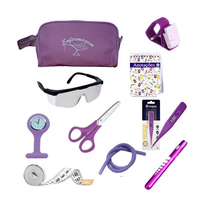 Kit Material de Bolso para Enfermagem com Relógio - Lilas