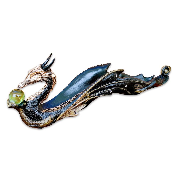 1- Incensário do Dragão Celestial com bola de cristal verde para 1 vareta. Além de funcionar como um incensário, ele também serve como um lindo enfeite decorativo para tornar seu ambiente mais rico.