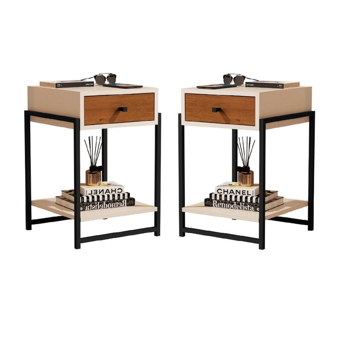 Kit Mesa Cabeceira Lateral Cama Quarto Industrial Pérola
