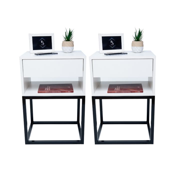 R: Trabalhamos com mesas de cabeceira nas cores branco, preto e off white.