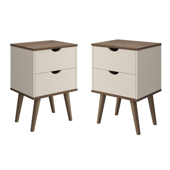 Kit Mesa de Cabeceira Lateral de Cama Madri 2 Gavetas Retrô:off / Canela OFF / CANELA