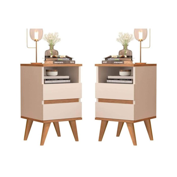 Kit Mesa de cabeceira Retrô Pés Palito Em Madeira Maciça - Pop - Varias cores - Off white / Nature