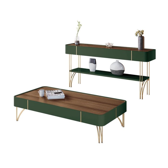 Kit Mesa de Centro e Aparador Miami Orgânica - Verde Pistache-castanho - Edecasamoveis Verde Pistache-Castranho