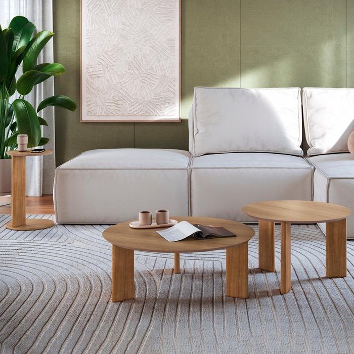 Kit Mesa de Centro e Lateral Mesa de Centro produzida em MDF com acabamento BP, e pés de madeira maciça, materiais que garantem resistência e durabilidade. Possuem detalhes arredondados conferindo um toque orgânico e um visual impecável, mesas assumem um papel importante na decoração, transformam qualquer ambiente em um refúgio de elegância e conforto. Descubra a perfeita fusão entre design sofisticado e materiais naturais, ideal para quem busca exclusividade e estilo, o destaque que seu ambiente merece. Este móvel chegará em sua casa separado em 03 Volumes.