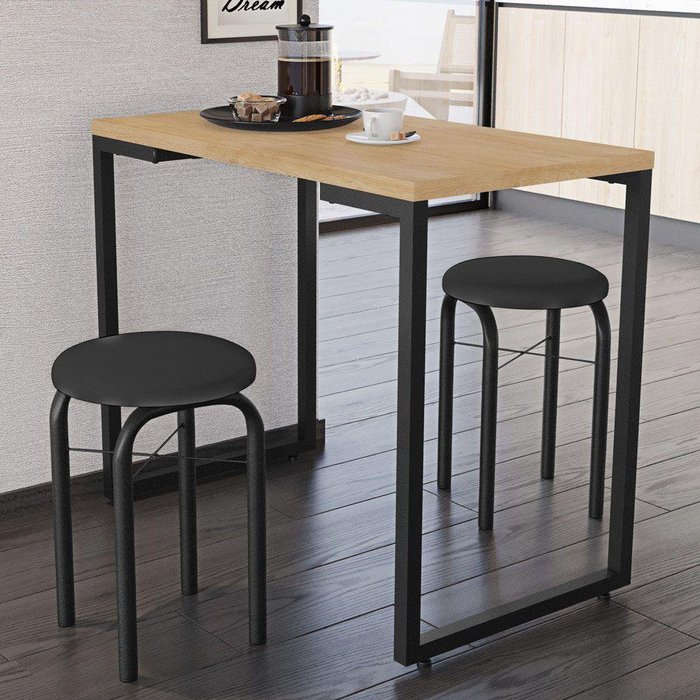 Kit Mesa De Cozinha 90Cm Com 2 Banquetas F02 Nature/Preto Preto