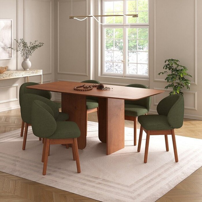 Kit Mesa de Jantar Boreal 180cm e 4 Cadeiras Jambu CabeCasa MadeiraOriginals Cinamomo/Verde Musgo