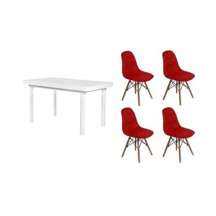 Kit Mesa de Jantar França 110x80 Branca+ 4 Cadeiras Charles Eames Botonê Vermelho