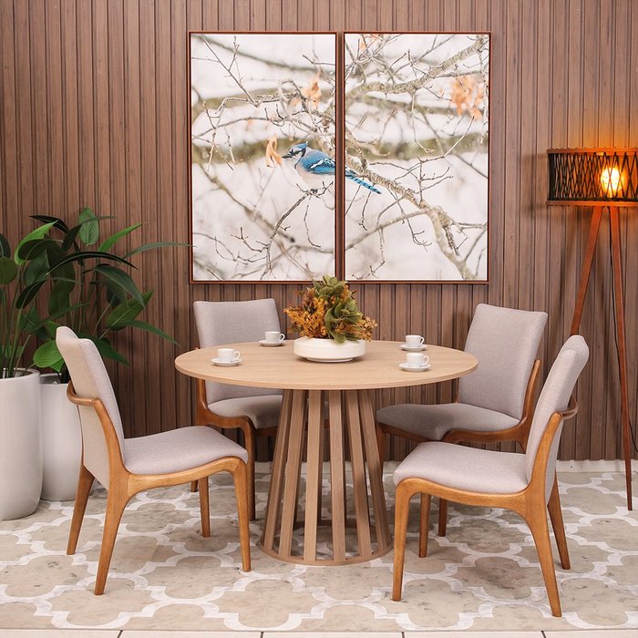 Conjunto Mesa de Jantar Redonda Gabi 120cm com 4 Cadeiras Estofada em Madeira Garbo