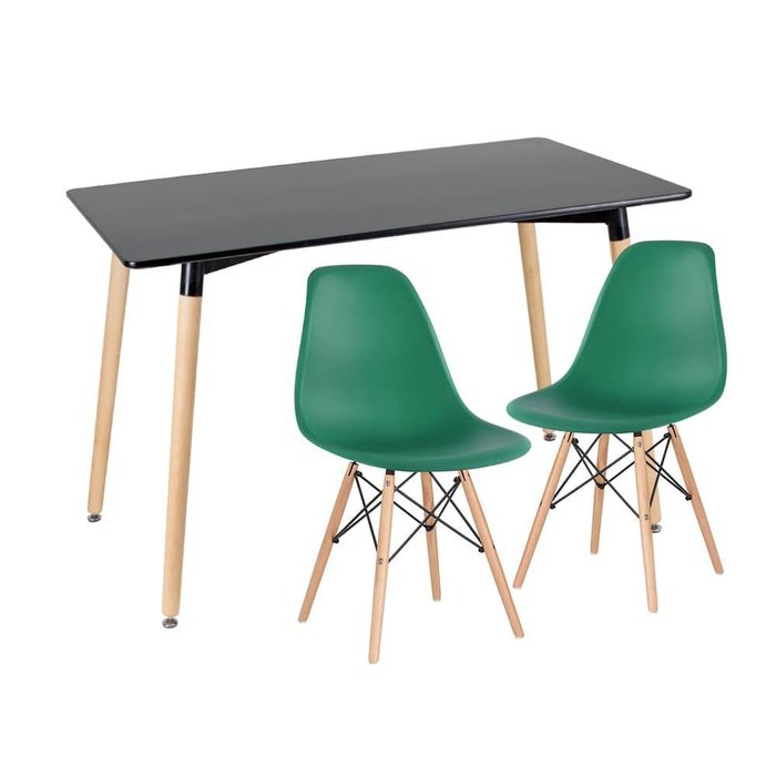 KIT - Mesa de jantar retangular Eames 60 x 120 cm preto + 2 cadeiras Eiffel DSW Verde escuro