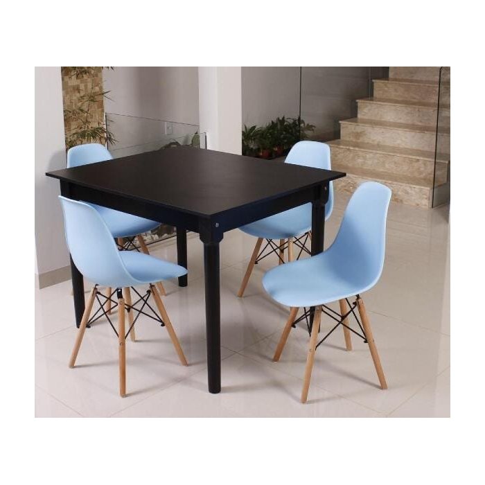 Kit Mesa de Jantar Robust 110x90 Preta + 4 Cadeiras Charles Eames - Azul Claro Azul