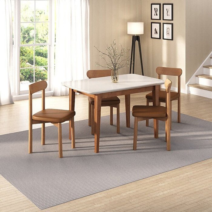 Kit Mesa de Jantar Tangará 130cm e 4 Cadeiras Pitanga CabeCasa MadeiraOriginals Caramelo/Off White