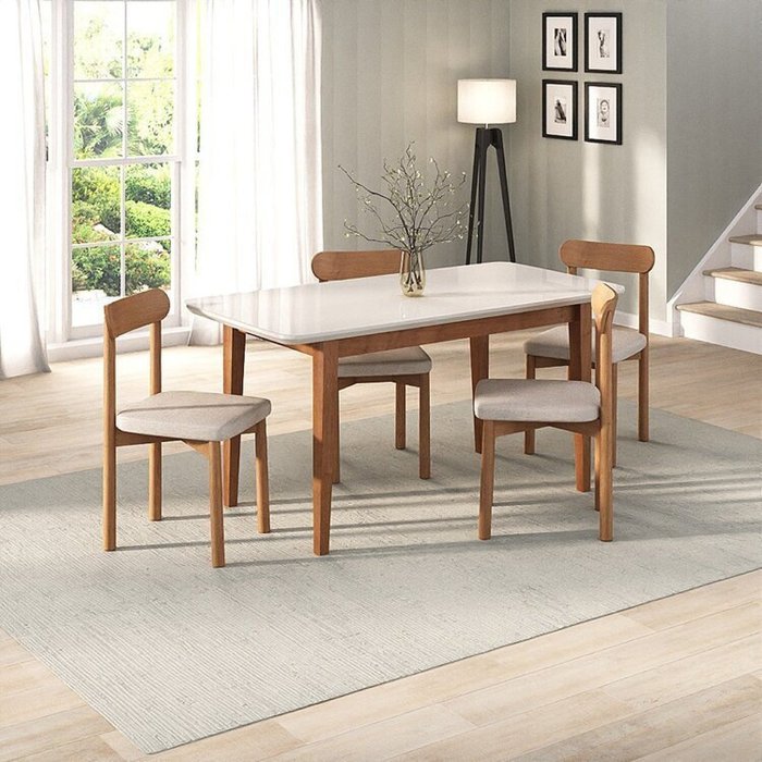 Kit Mesa de Jantar Tangará 160cm e 4 Cadeiras Pitanga CabeCasa MadeiraOriginals Caramelo/Off White/Cinza