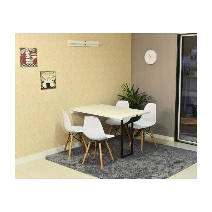 Composição: 01 Mesa Dobrável Retrátil de Parede + 4 Cadeiras Charles Eames