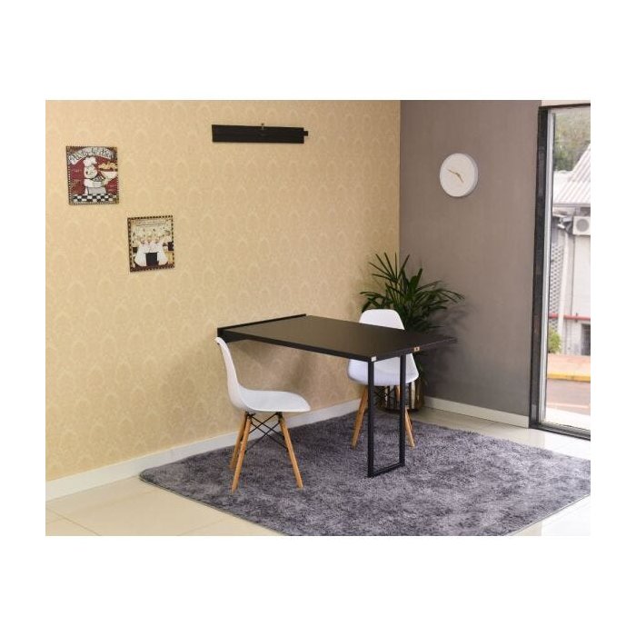 Kit Mesa Dobrável Retrátil 120x75 Preta + 2 Cadeiras Charles Eames Branca
