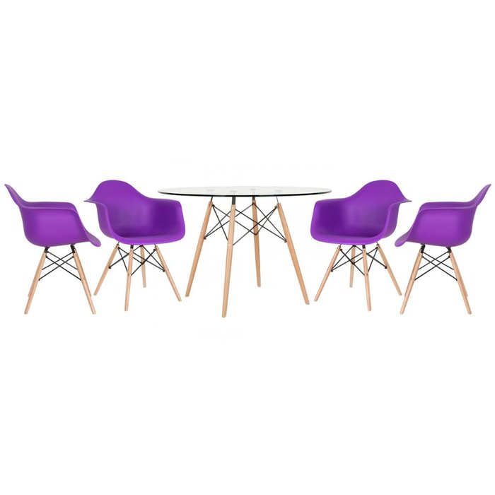 KIT - Mesa Eames com tampo de vidro 120 cm + 4 cadeiras Eiffel DAW Roxo Roxo