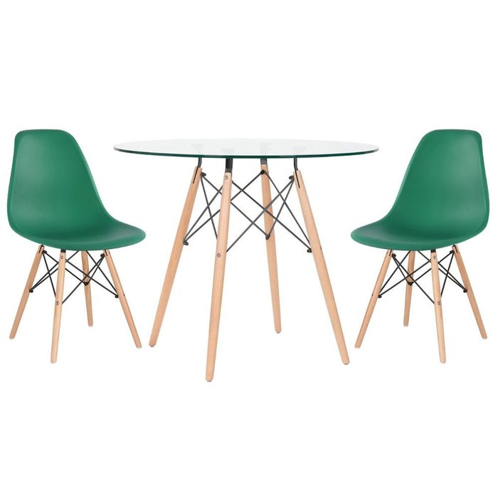 KIT - Mesa Eames com tampo de vidro 90 cm + 2 cadeiras Eiffel DSW Verde escuro