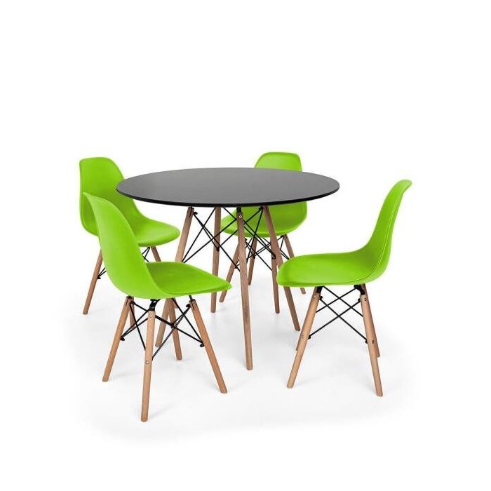 Kit Mesa Jantar Eiffel 120cm Preta + 4 Cadeiras Charles Eames - Verde