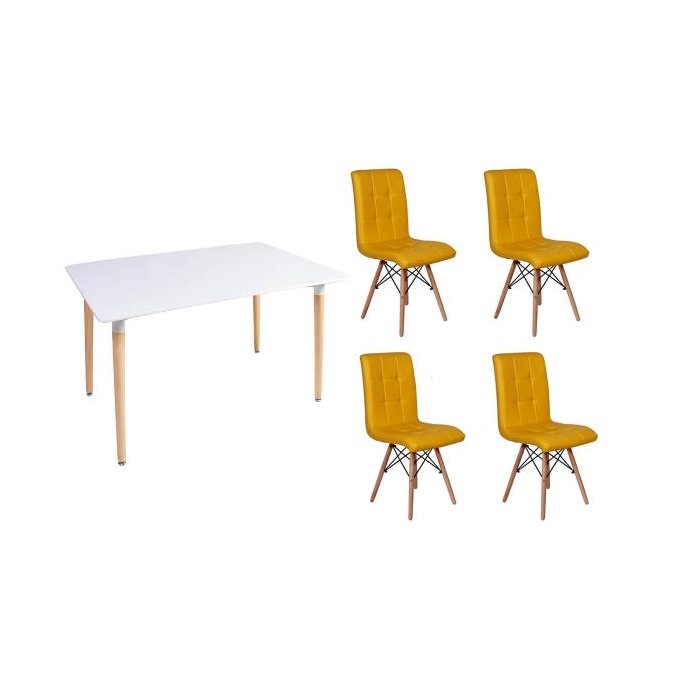Kit Mesa Jantar Eiffel 120x80 Branca + 4 Cadeiras Gomos - Amarela