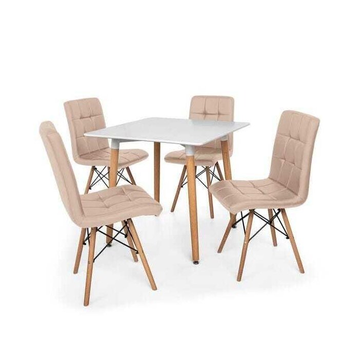 Kit Mesa Jantar Eiffel 80x80 Branca + 4 Cadeiras Gomos - Nude