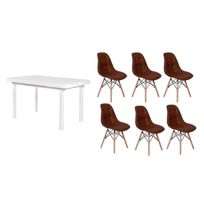 Kit Mesa Jantar França 160x80 Branca com 6 Cadeiras Charles Eames Botonê Marrom