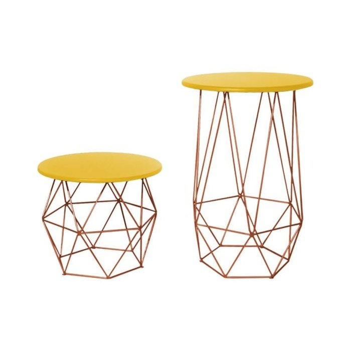 Kit Mesa Lateral + Mesa Centro Eiffel Bronze Tampo Amarelo