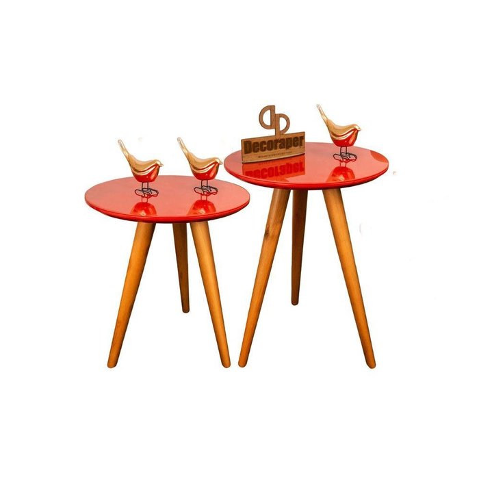Kit Mesa Lateral Tripé Laqueada Com Vidro 45cm Vermelha