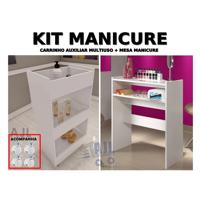 Kit Mesa Manicure + Expositor Com Rodinhas Esmaltes AJL Carrinho para Manicure