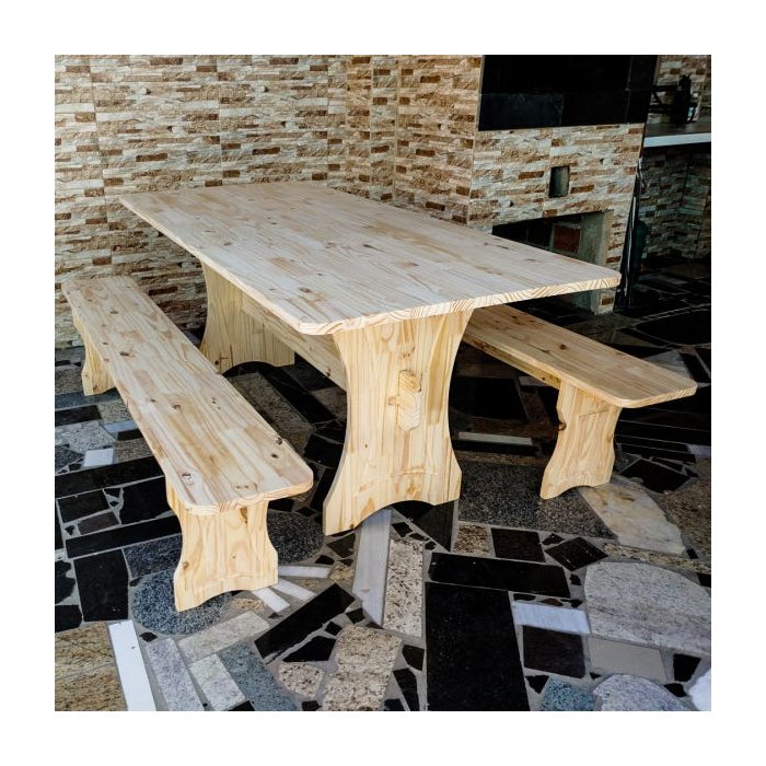Este produto e montado somente por encaixe, não sendo nescessario ferramentas e parafusos O conjunto com mesa e bancos de madeira desmontável é incrível! As refeições e encontros com família e amigos ficarão ainda mais especiais. O Kit de Mesa com Bancos tem um design tradicional antigo bem conhecido, meio rústico, muito bonito que nunca sai de moda. Fabricado com material de qualidade, o conjunto é feito inteiramente em madeira de pinus, tratada e beneficiada sendo mais resistente e durável. Se o cliente preferir, tem a opção de aplicar qualquer finalização na mesa, não há necessidade, mas se desejar, poderá aplicar por exemplo verniz de diversas tonalidades, a mesa vai pronta para receber qualquer finalização ou não. Pois ela é enviada pronto para uso, tendo um charme especial rústico.Sem dúvidas o seu grande diferencial é a montagem, feita inteiramente por encaixes, dispensa o uso de qualquer ferramenta ou parafusos. Sendo bem rápido e fácil de montar, não requer ajuda de profissional, e uma pessoa sozinha pode montar e desmontar a mesa. Isso mesmo, a mesa pode ser desmontada facilmente, possibilitando que seja usada ocasionalmente, descontada não ocupa muito espaço, montada e uma mesa muito espaçosa para receber muitos amigos e família. A mesa pode ser usada em diversos ambientes, como cozinhas e salas de jantar, mas principalmente é ideal para Área da Churrasqueiras, quiosques, chácaras, sítios e fazendas. Podendo ser usada e festas e eventos por sua versatilidade. A mesa vem acompanhada de dois bancosEspecificações: Material: Madeira Pinus Beneficiada Montagem: Por encaixe Medidas Mesa: Altura: 80 cm Largura: 90cm Comprimento: 195cm Medidas dos Bancos Altura: 44,5 cm Largura: 30cm Comprimento: 195cm Conteúdo: 1 Mesa e 2 Bancos