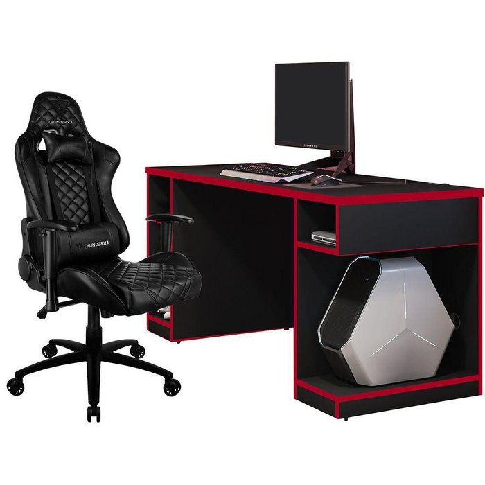Kit Mesa Para PC Gamer Destiny Preto Vermelho e Cadeira Gamer TGC12 H01 ThunderX3 Preto -Lyam Decor