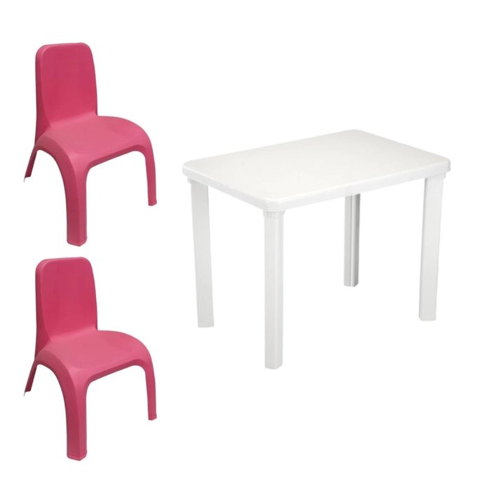 Kit Mesa Plástica Infantil Branca e 2 Cadeiras Rosa