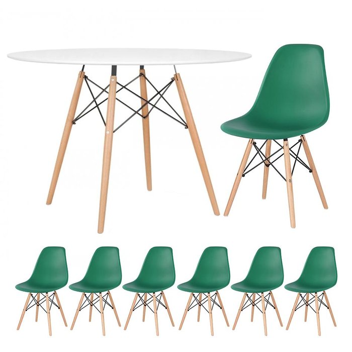 KIT - Mesa redonda Eames 120 cm branco + 6 cadeiras Eiffel DSW Verde escuro