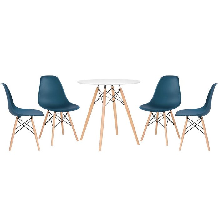 KIT - Mesa redonda Eames 70 cm branco + 4 cadeiras Eiffel DSW Azul petróleo Azul petróleo