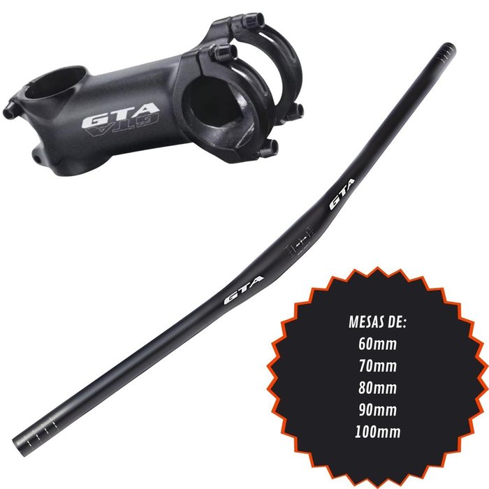 Kit Mesa Suporte Avanço + Guidão Bike GTA 9º Backsweep 31.8x760mm GTA KIT Mesinha Guidon Flat Reto B