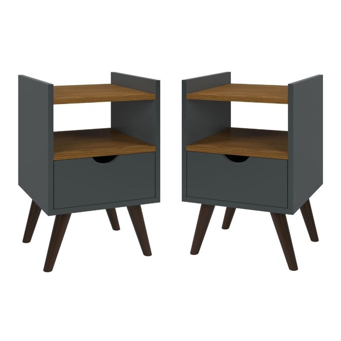 Kit Mesas de Cabeceira Alice com Gaveta 2 Peças e Pés Retro:cinza/freijo
