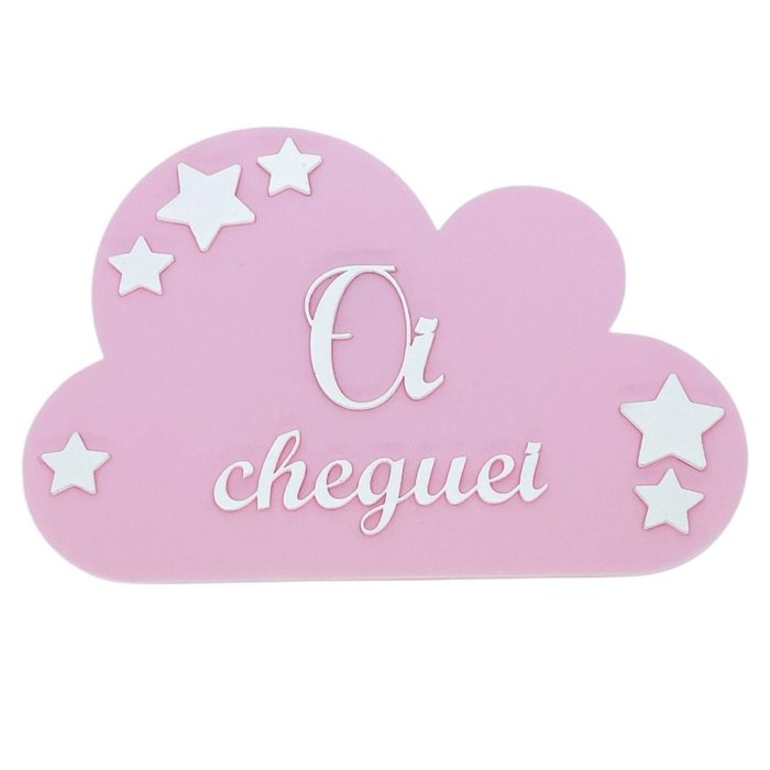 Kit Mesversário Placa Boas Vindas Acrílico Bebê Decorar Foto Menina Plaquinha Decoração Nuvem Rosa