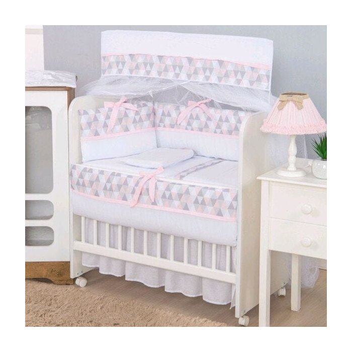 Kit Mini Berço 08 peças Bandeirola Rosa