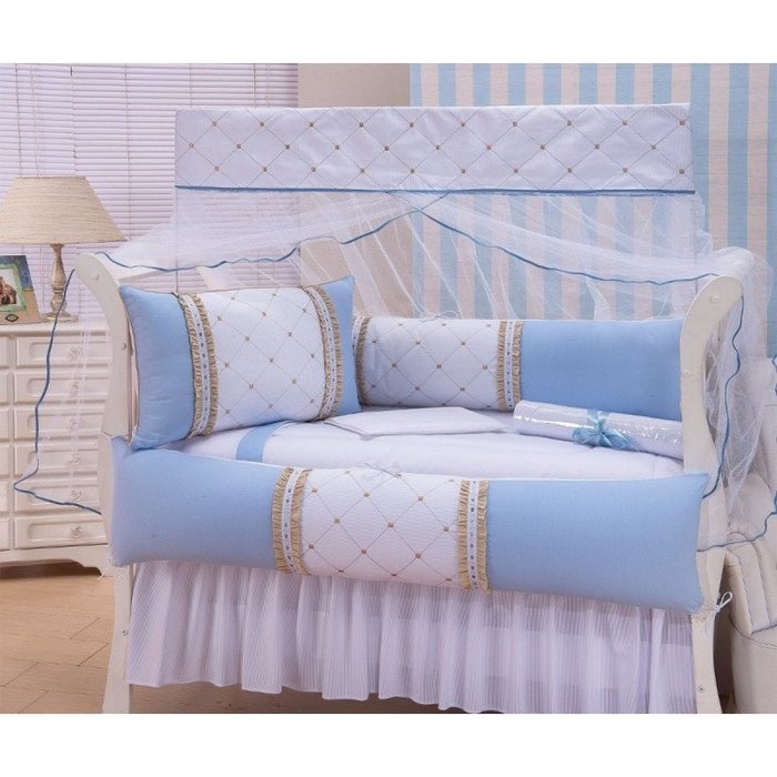 Kit Mini Berço 10 Peças - Mosaico Azul