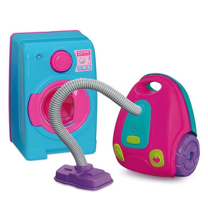 Kit Mini Brinquedo Casinha Maquina De Lavar e Aspirador De Pó -