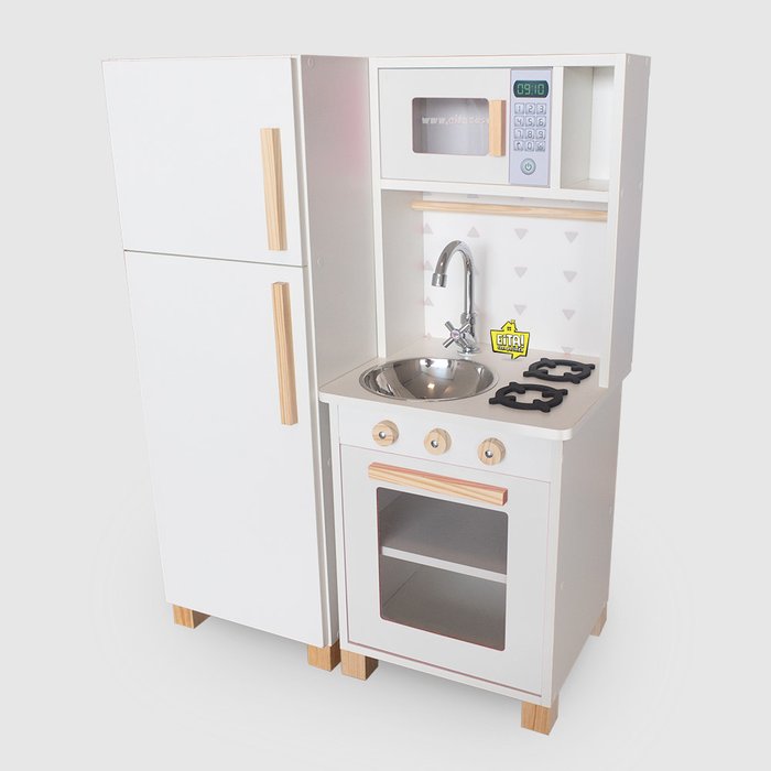 Confeccionada em mdf de 15mm, a mini cozinha infantil é muito resistente, permitindo que seu filho brinque por muito tempo. Além disso, tem um charme todo especial, e por ser uma versão compacta, se encaixa bem em qualquer ambiente da casa.