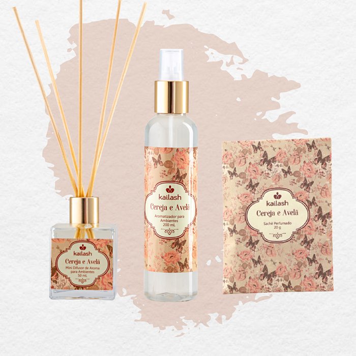 Kit Mini-difusor para ambiente 50ml + Home spray 200ml + Sachê Perfumado 20g