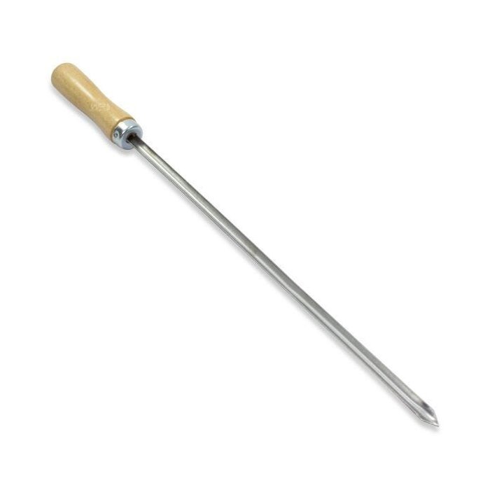 Os petiscos não podem faltar no seu churrasco de domingo, siva-os com elegância e prepare com muita facilidade. Com seu tamanho reduzido para o perfeito preparo de coraçãozinho, salsichão e medalhões de carne, produzido no material da mais alta qualidade para uma longa utilização da peça. Lâmina simples com comprimento de 30cm e cabo em madeira tratada que evitará queimaduras ao manusear o espeto, é de fácil limpeza e pode ser colocado em qualquer espaço após a utilização. Petiscos são a porta de entrada para um belo churrasco, prepare-os com praticidade utilizando os acessórios perfeitos!