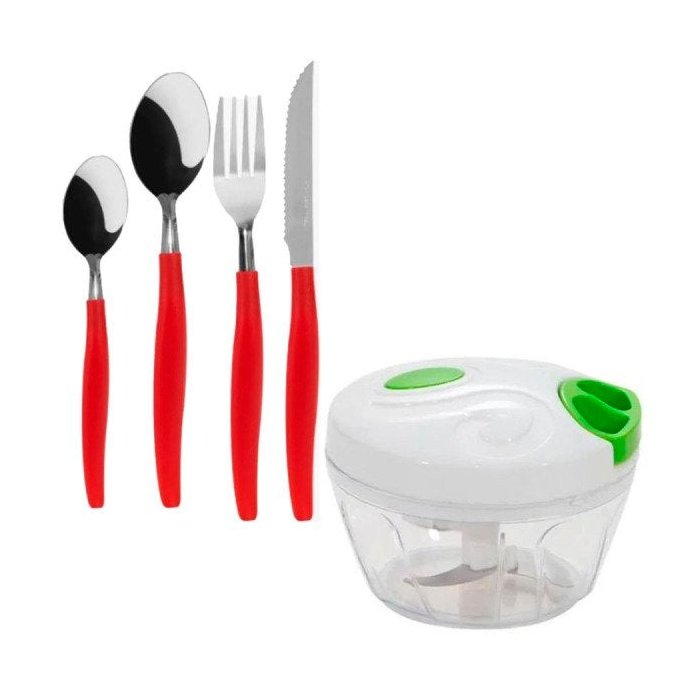 Kit Mini Processador Manual 3 Laminas + Jogo De Talher 24Pçs