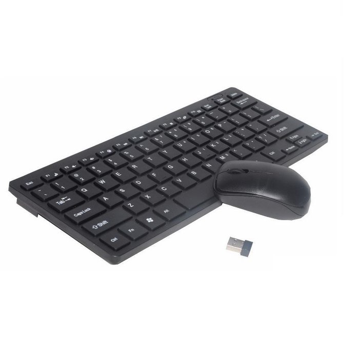Kit Mini Teclado E Mouse Wireless Slim Plug Play 2.4ghz - Preto Kit Mini Teclado E Mouse Wireless Slim Plug Play 2.4ghz - Preto Teclado: