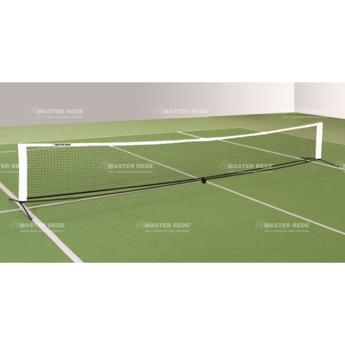 Descrição: Kit Mini Tênis Multipisos, desenvolvido para iniciação ao jogo de tênis. Indicado para crianças e adeptos a prática do esporte como lazer e recreação, com foco no ensino das técnicas básicas iniciais do tênis; de fácil montagem para ser utilizado em qualquer tipo de solo como areia, grama, terra, concreto e asfalto. composto por: - 2 mastros de ferro desmontáveis com pintura eletrostática totalizando 1,00m cada, - 2 bases de tubo de ferro, desmontável, posicionadas nas laterais abaixo dos mastros - 1 base de tudo de ferro, desmontável, centralizada abaixo da rede com conexão de mastro a mastro - 2 peças plásticas (tripé) para conexão dos mastros e da base central - 1 Bloco esticador confeccionado em EVA -1 tubo com 6 petecas - 1 Rede Medida 0,80 x 5,00, com 1 faixa superior e 2 faixas laterais de 20 cm confeccionada com fio 1,5mm de seda (PP) sem nó com malha 04x04, - a fixação da rede no poste e feita através de uma abertura nas faixas laterais. - Manual de montagem e Instruções ilustrado - Bolsa com alça para armazenamento e transporte Detalhe! A base centralizada abaixo da rede que faz a sustentação dos mastros e juntamente com o bloco esticador faz a rede ficar esticada.