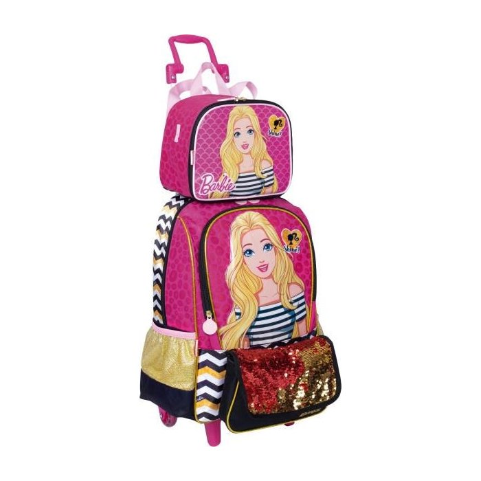 Kit Mochila Escolar Rodinhas Lancheira Barbie 65199 Sestini