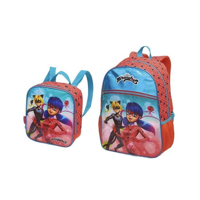 Kit Mochila Infantil Costas + Lancheira Miraculous LadyBug Pacific - Vermelho