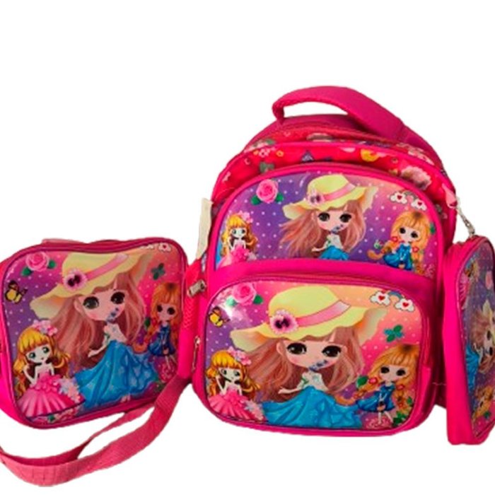 Kit Mochila Lancheira e Estojo Feminina Rosa