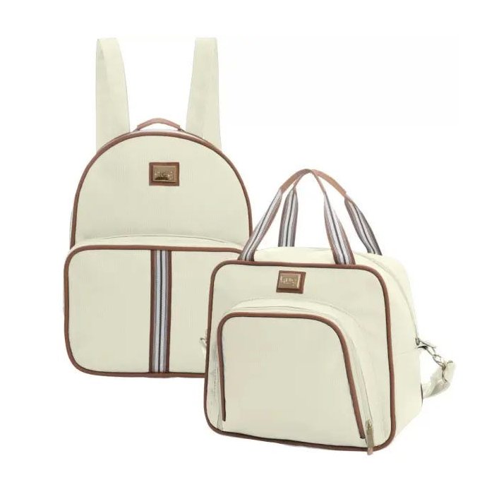 Kit Mochila Maternidade com Bolsa M Mônaco Bege - Hug Baby
