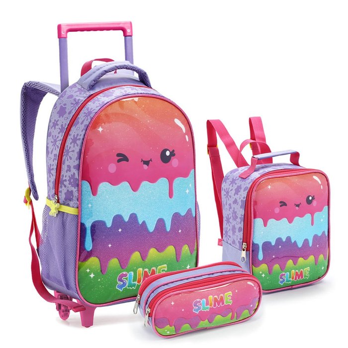 Kit Mochila Rodinha Infantil Menina Estampa Slime Super Fofa Seanite Sli41444